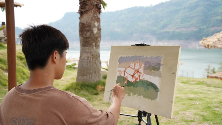 “2022年,四川美术学院的老师们来到镇上采风,认为这里的人文与风景非常适合开展写生。”说起为何发展写生产业,王家磊讲述了桥头镇与艺术“结缘”的故事。他介绍,后来在桥头镇政府的邀请下,四川美术学院、重庆大学等多所高校的专家于当年6月走进桥头镇开展产业指导。大家一致认为,桥头镇自然环境优越,资源优势明显,十分适合写生产业发展。